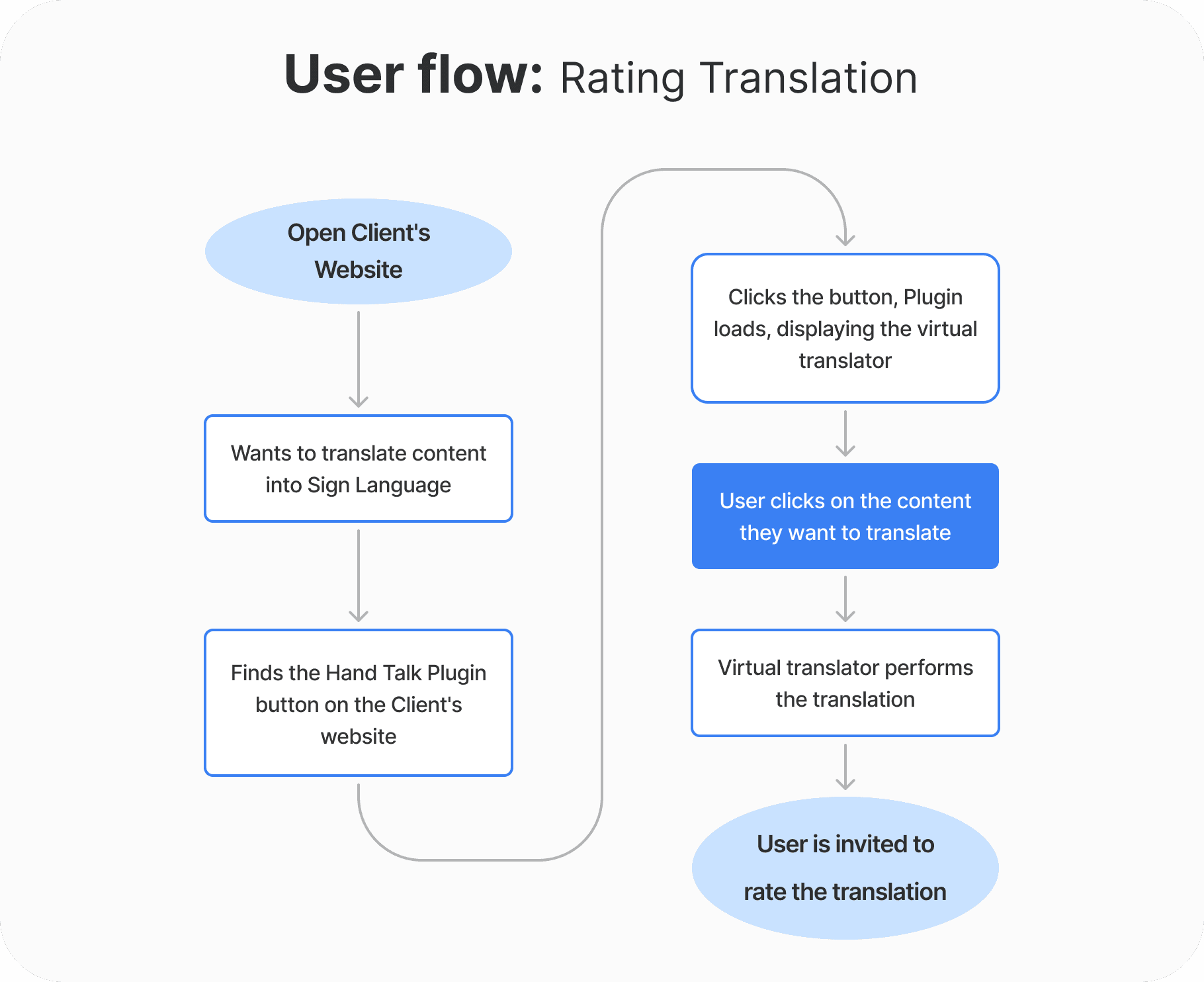 Flowchart demonstrating the main touchpoints a user goes through until reaching the translation evaluation phase.