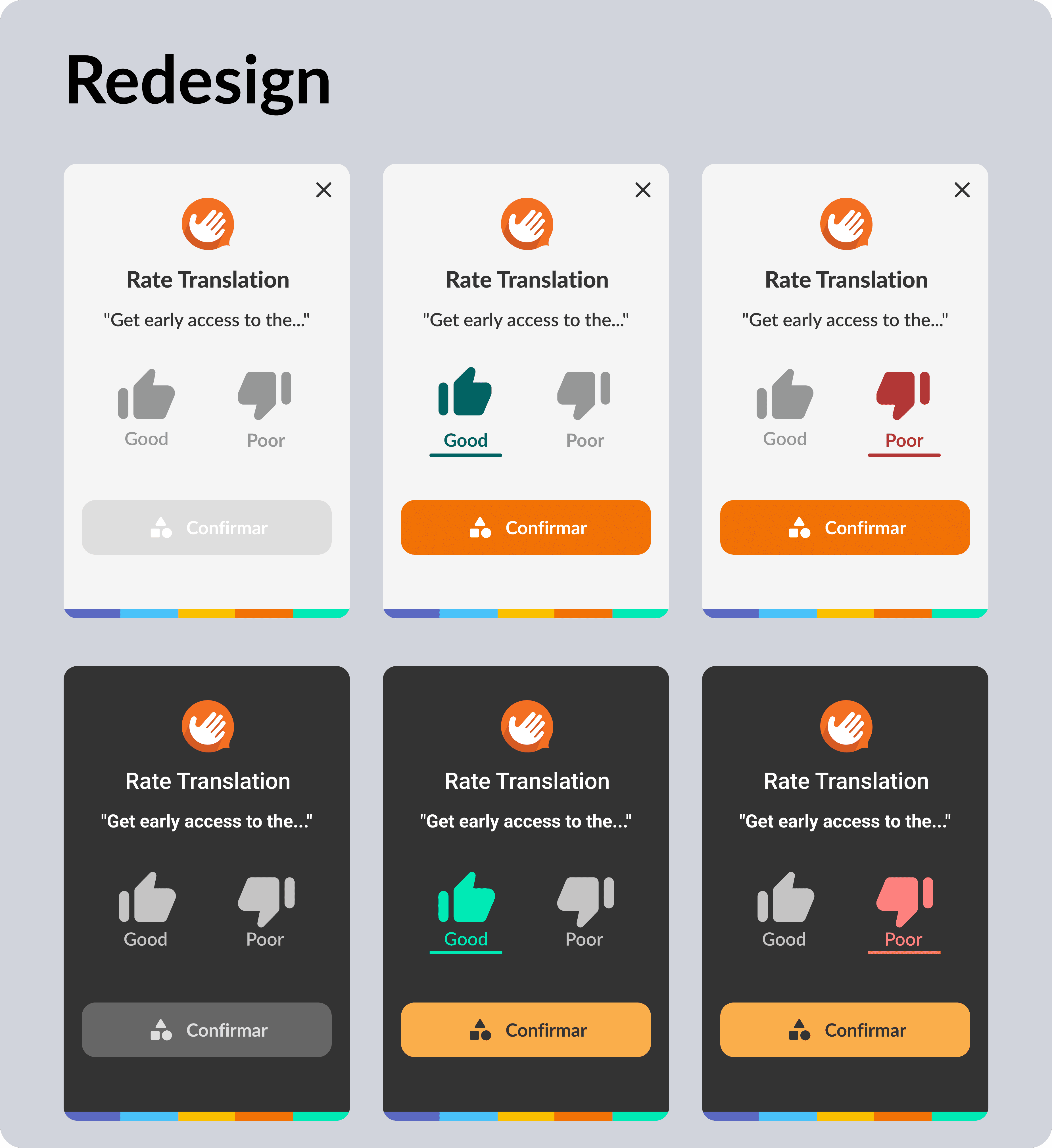Our team implemented a major redesign of the translation evaluation interface, focusing on accessibility and universal design principles. The previous interface relied heavily on iconography without textual context, potentially creating barriers for users with different cognitive and visual abilities.